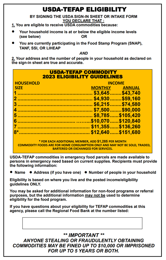You can access up to 12 boxes per year. This does not necessarily mean one box per month. We have many people who need help for a short amount of time and may get 12 boxes in 3 months and we never see them again. We have folks who work seasonally and only need help 6 months out of the year, so they access 2 boxes per month. Nearly all eligible seniors and those with disabilities living on fixed incomes use their card once a month to offset their limited budgets. IT’S YOUR CHOICE. We try to provide a well-rounded box of food. June through November please take advantage of the “Produce Connection.” Visit our website, klamathfoodbank.org for locations and times.